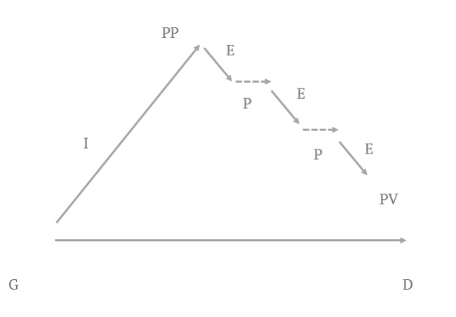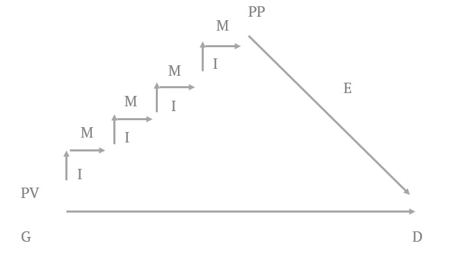 1. Assis confortablement, fermer la narine droite (D) avec le pouce et à poumons vides (PV), inspirer (I) par la narine gauche (G) puis maintenir (M) le souffle, inspirer puis maintenir…