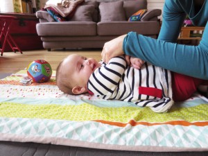Izia, plus jeune yogini réalisant la posture yoga de l’aigle (variation) à l’aide de sa maman Delphine.