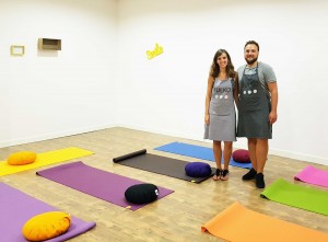 Les fondateurs de Bulko dans la salle de yoga avec Orezen.