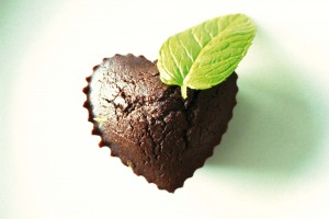Gâteau au chocolat en forme de cœur symbolisant la vente de gâteaux au profit du projet « Cultivons notre jardin et faisons le grandir »