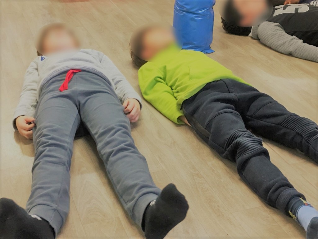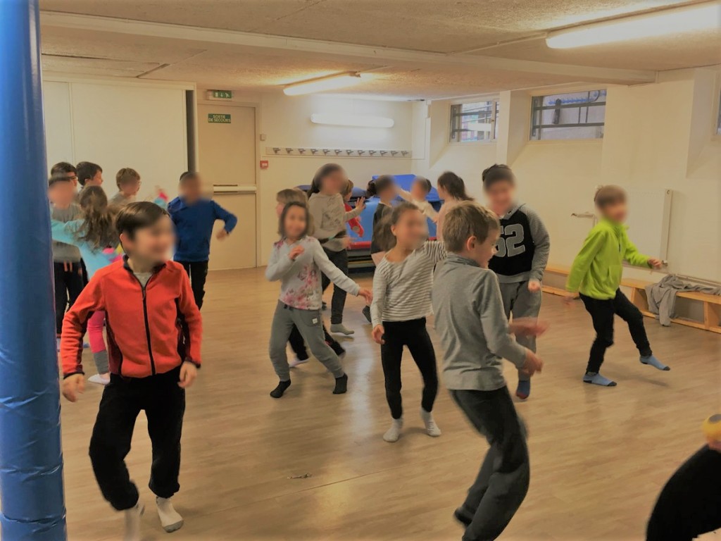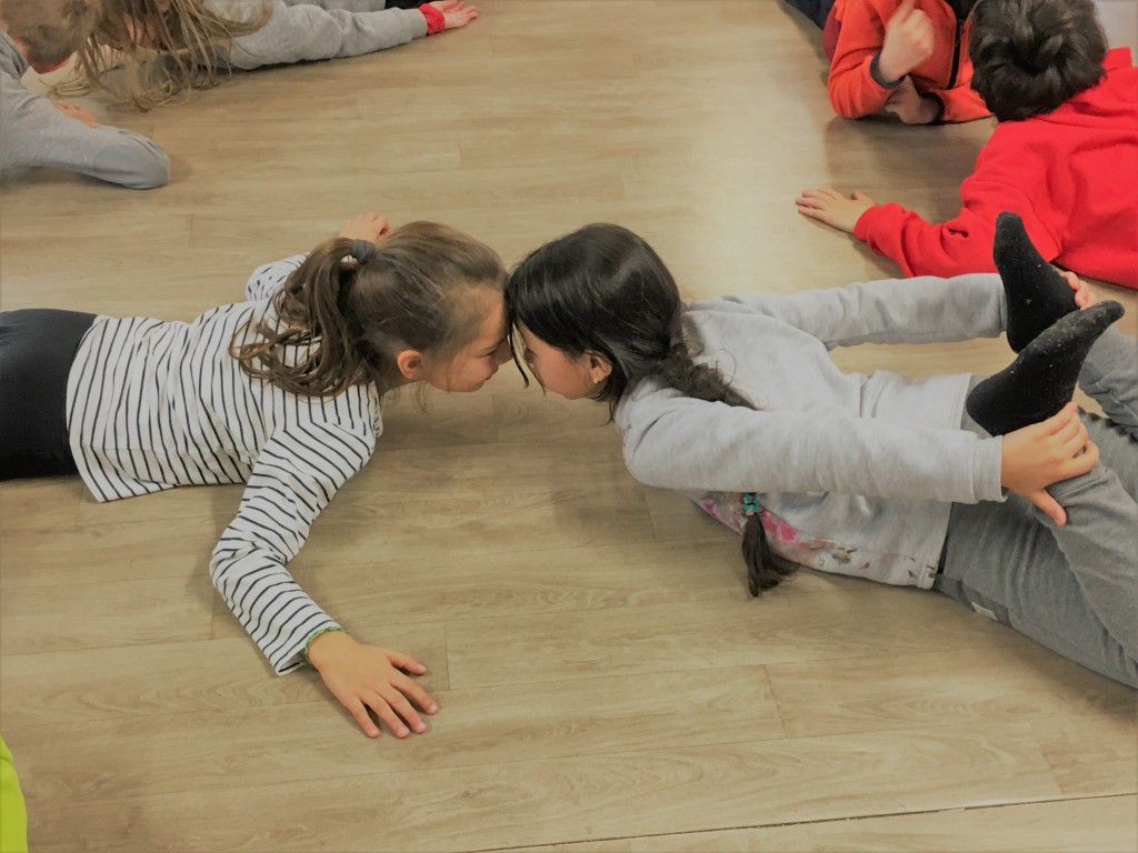 Puis les enfants apprennent à se laisser aller, à bouger leur corps dans l’espace debout, accroupis… tout en souriant.
