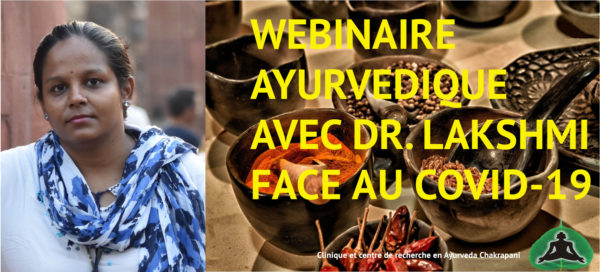 Samedi 2 mai à 10h30 en ligne et en direct – Dr Lakshmi (1), médecin ayurvédique de la clinique et centre de recherche Chakrapani (2) en Inde, a présenté comment renforcer notre système immunitaire face à la pandémie Covid-19. Attention, il ne s’agissait pas de dire que l’Ayurveda a un remède miracle mais que la prévention en … Lire la suite de Webinaire au profit de la clinique Chakrapani qui aide la population en Inde dans la pandémie Covid 19