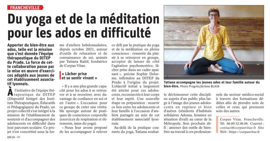 Très vite, les lyonnais rejoignent la pratique dans les locaux partagés de Gym Autrement en plein centre-ville (Lyon 1er). Des relations s’établissent avec d’autres structures qui s’inscrivent dans la même démarche et de nombreux projets voient le jour notamment des initiations à la méditation avec le centre de pleine présence de Bellecour, des ateliers et des week-end de retraite spirituel notamment au sein de la communauté des karma yogis d’Hridraya à Longeval.