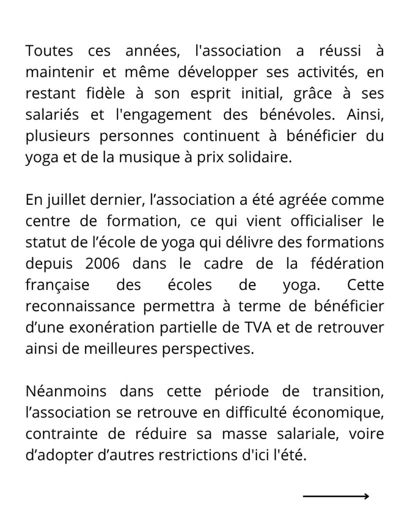 Financièrement, nous avons octroyé 100 euros des dons récoltés à la fin du trimestre de la saison 2025. Ce n’est pas grand chose mais nous espérons que cette petite goutte participera à continuer à faire rayonner le yoga partagé par Yoga Horizons.