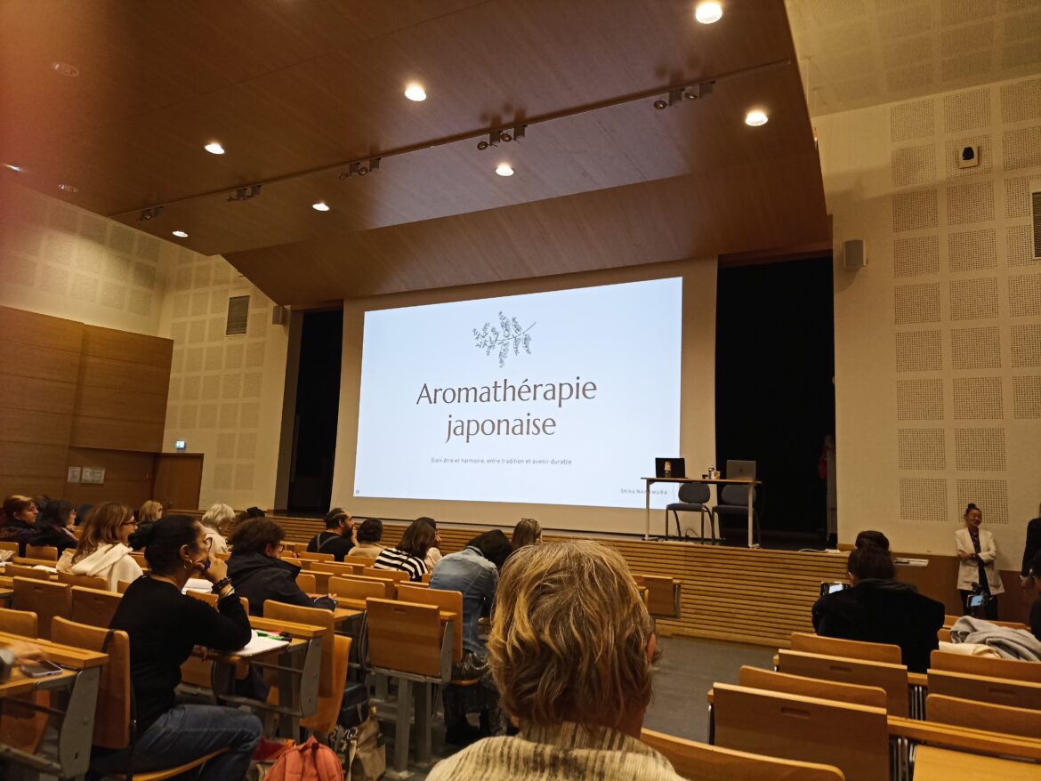 15 novembre 2025 – Shino Nakamura, aromathérapeute et formatrice au Japon est venue présentée à Dardilly l’aromathérapie japonaise qui cherche à renouer avec la nature tout en préservant la durabilité des forêts. Sa conférence a été applaudie par le public venu en grand nombre assister à une magnifique présentation que Shino a réussi à délivrer en français – qui n’est pas du tout sa langue, tout en transmettant l’essence de sa passion.