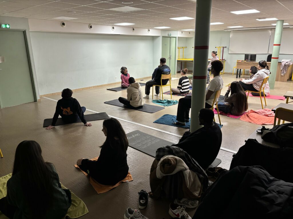 Communication des Organisations, parcours CSMIO à l’Université Lumière Lyon 2 pour mettre en place un projet de yoga. L’objectif principal de ce projet était de permettre aux participants, et plus particulièrement aux étudiants, de se détendre, de découvrir de nouvelles activités physiques accessibles et de mieux gérer le stress lié à leurs études.